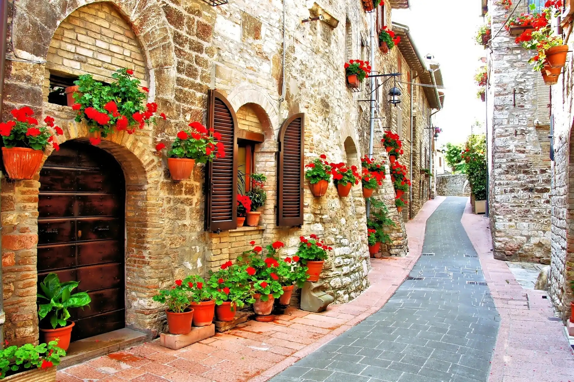 Zdjęcie Domy, Ulica, Kwiaty, Włochy