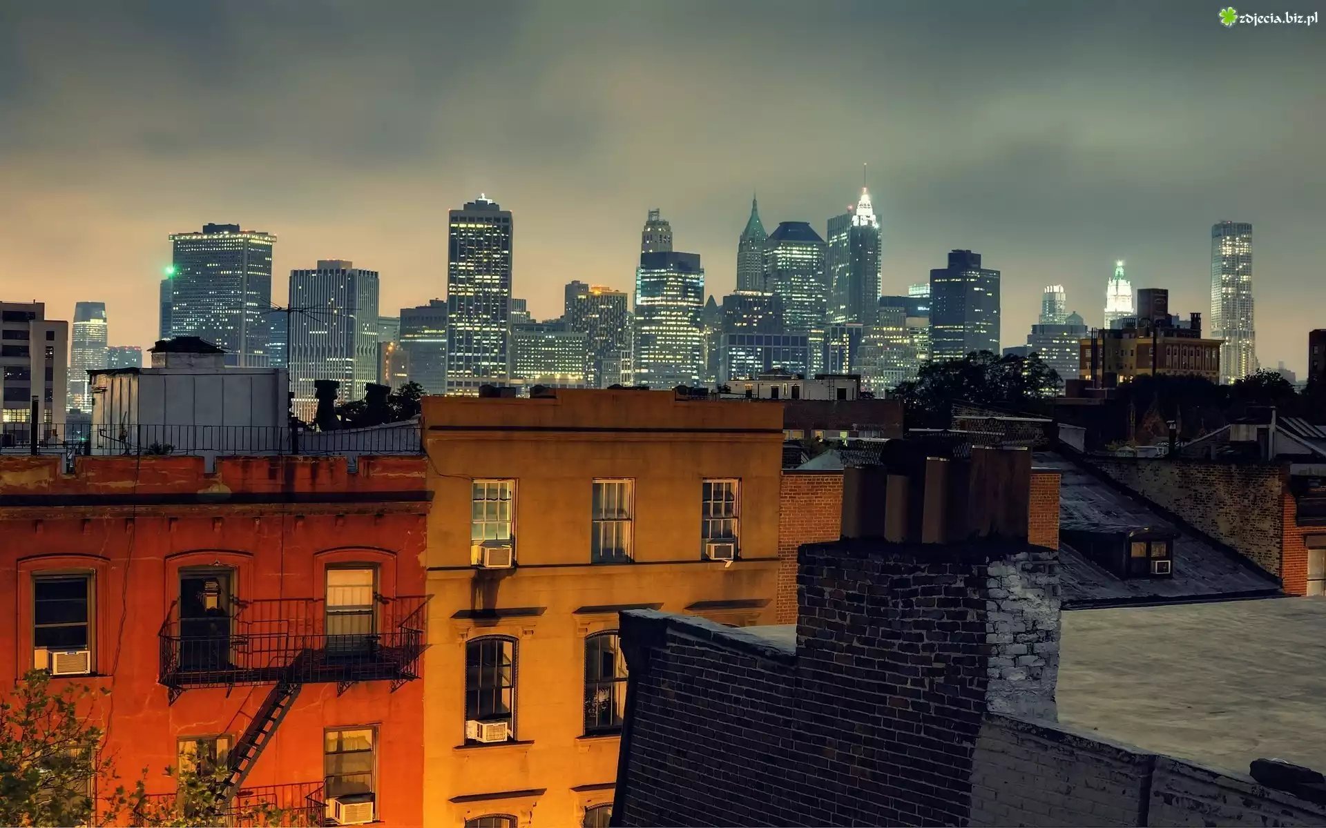 Zdjęcie Domy, Wieżowce, Nowy Jork, Miasto nocą