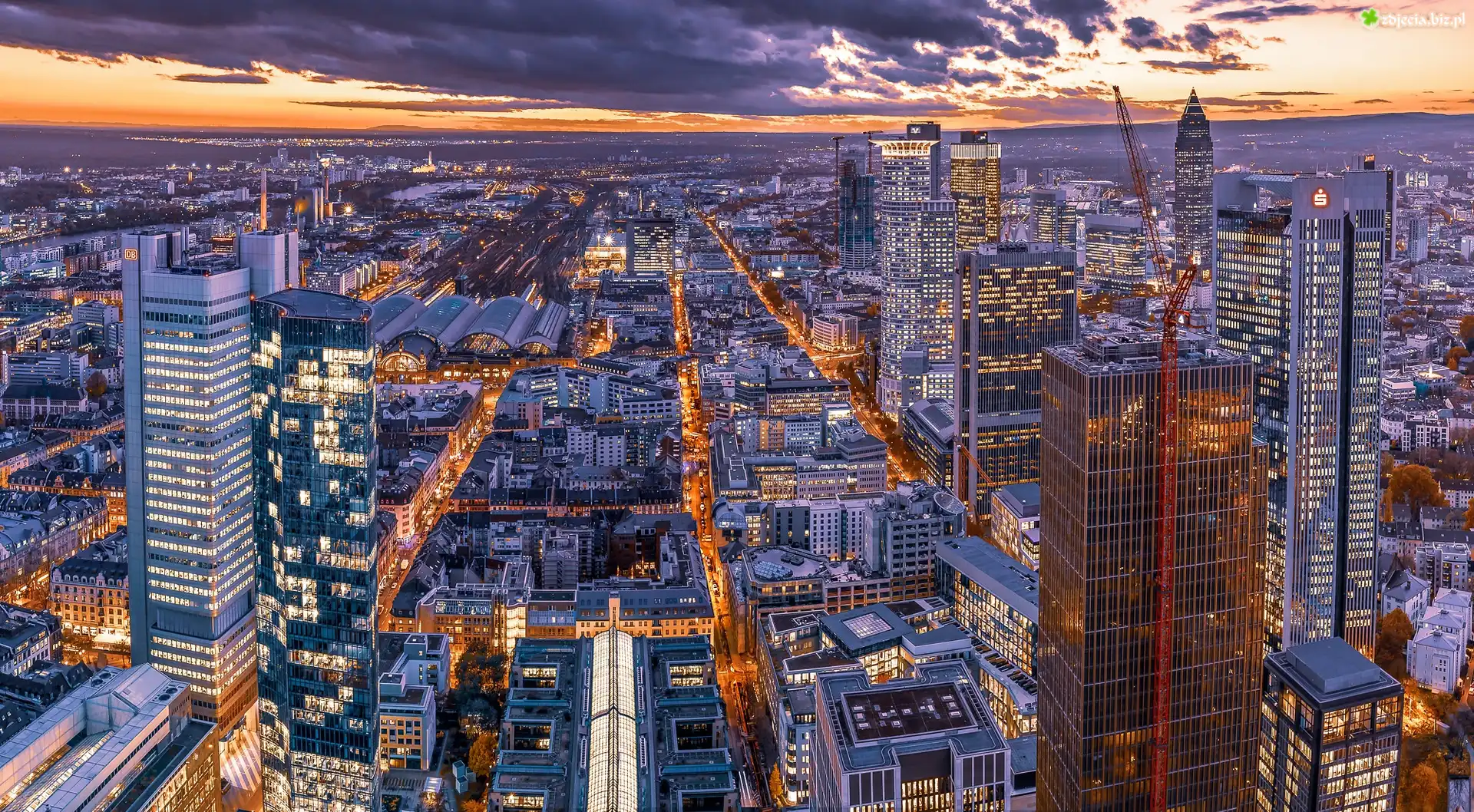 Zdjęcie Miasto, Domy, Wschód słońca, Frankfurt nad Menem, Niemcy