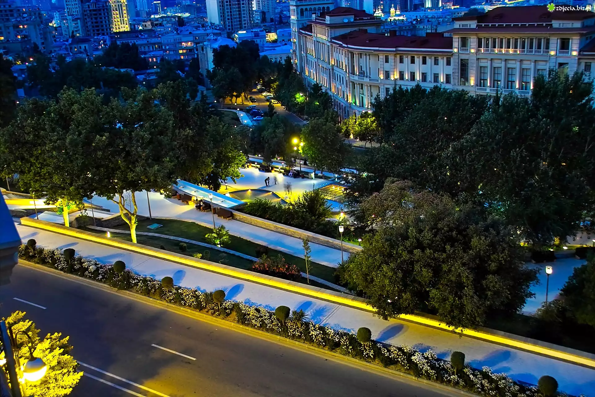 Zdjęcie Domy, Skwer, Drzewa, Nocna Panorama, Baku