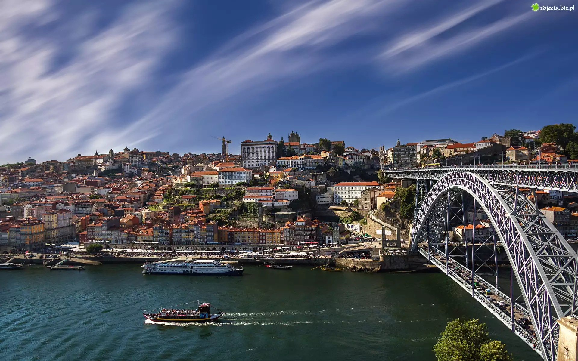 Zdjęcie Portugalia, Miasto, Porto, Rzeka Duero, Most, Statki, Domy