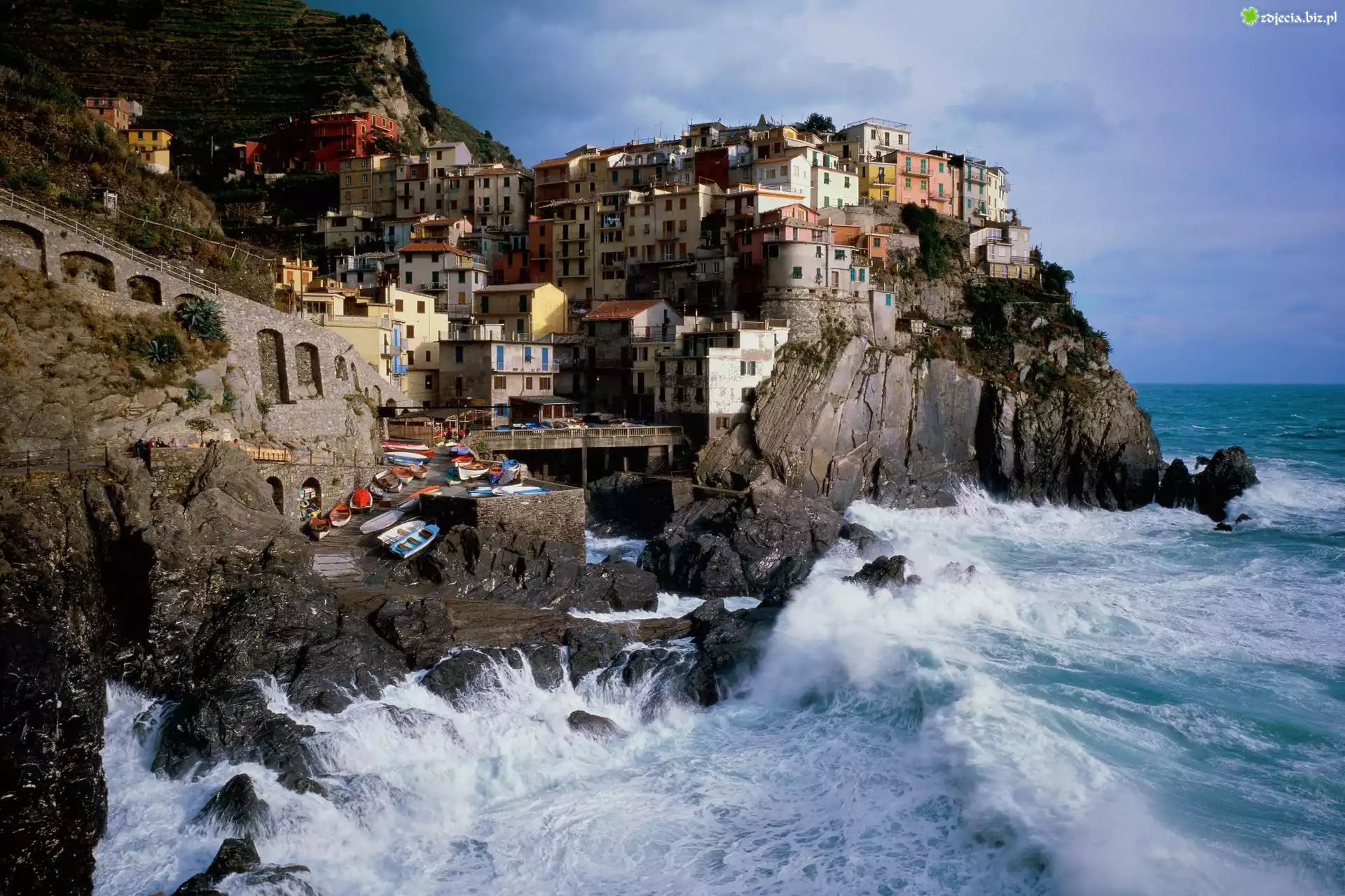 Zdjęcie Domy, Na, Skale, Wybrzeże