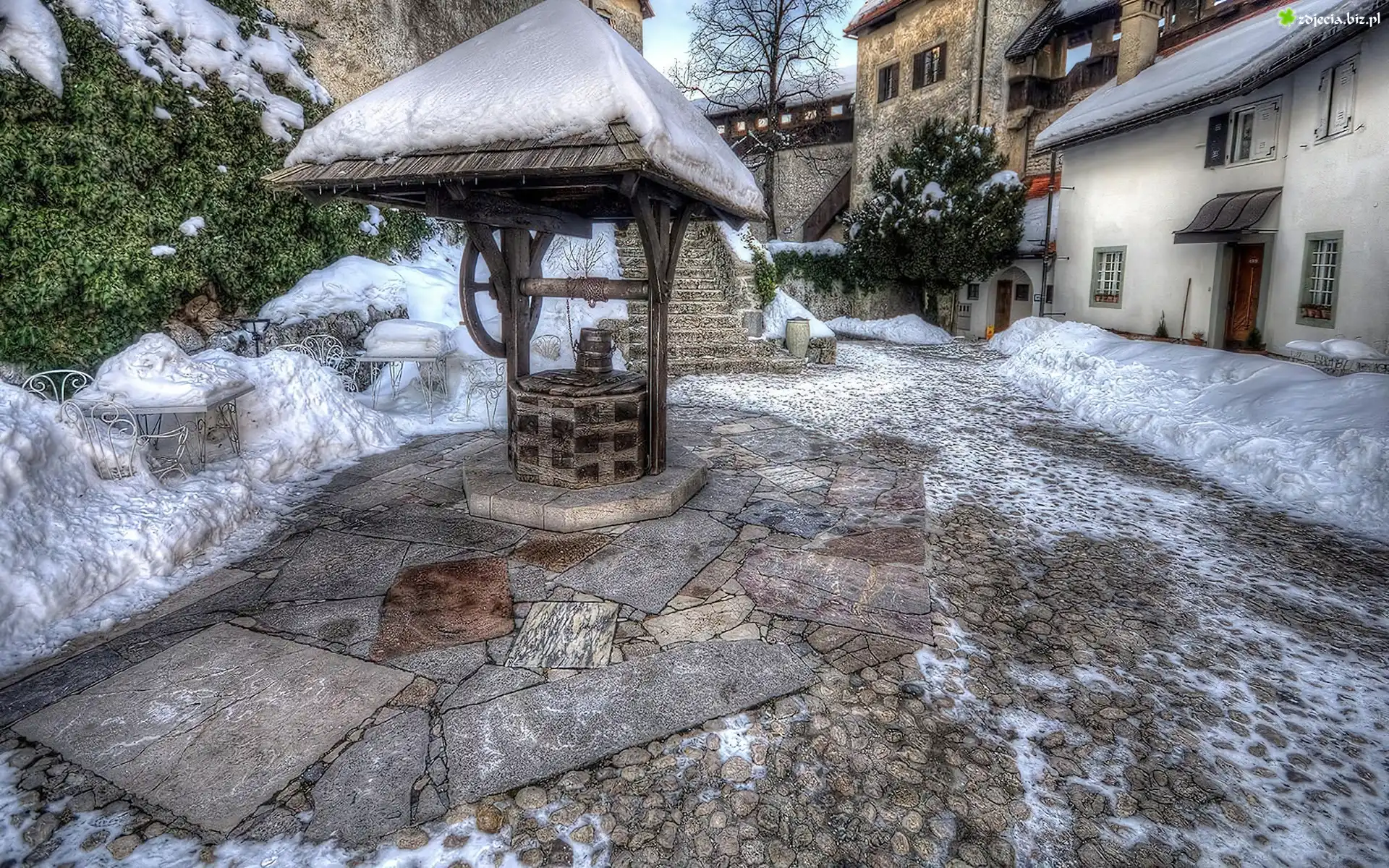 Zdjęcie Domy, Podwórko, Zima, Studnia, Schody