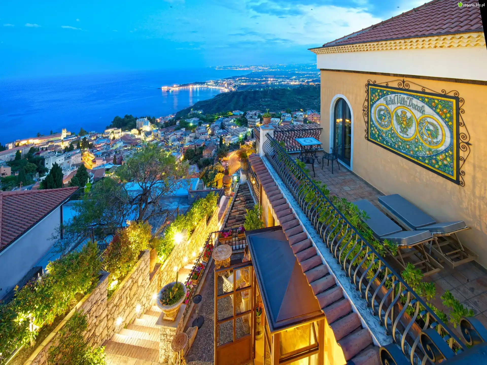 Zdjęcie, Domy, Panorama, Sycylia, Włochy