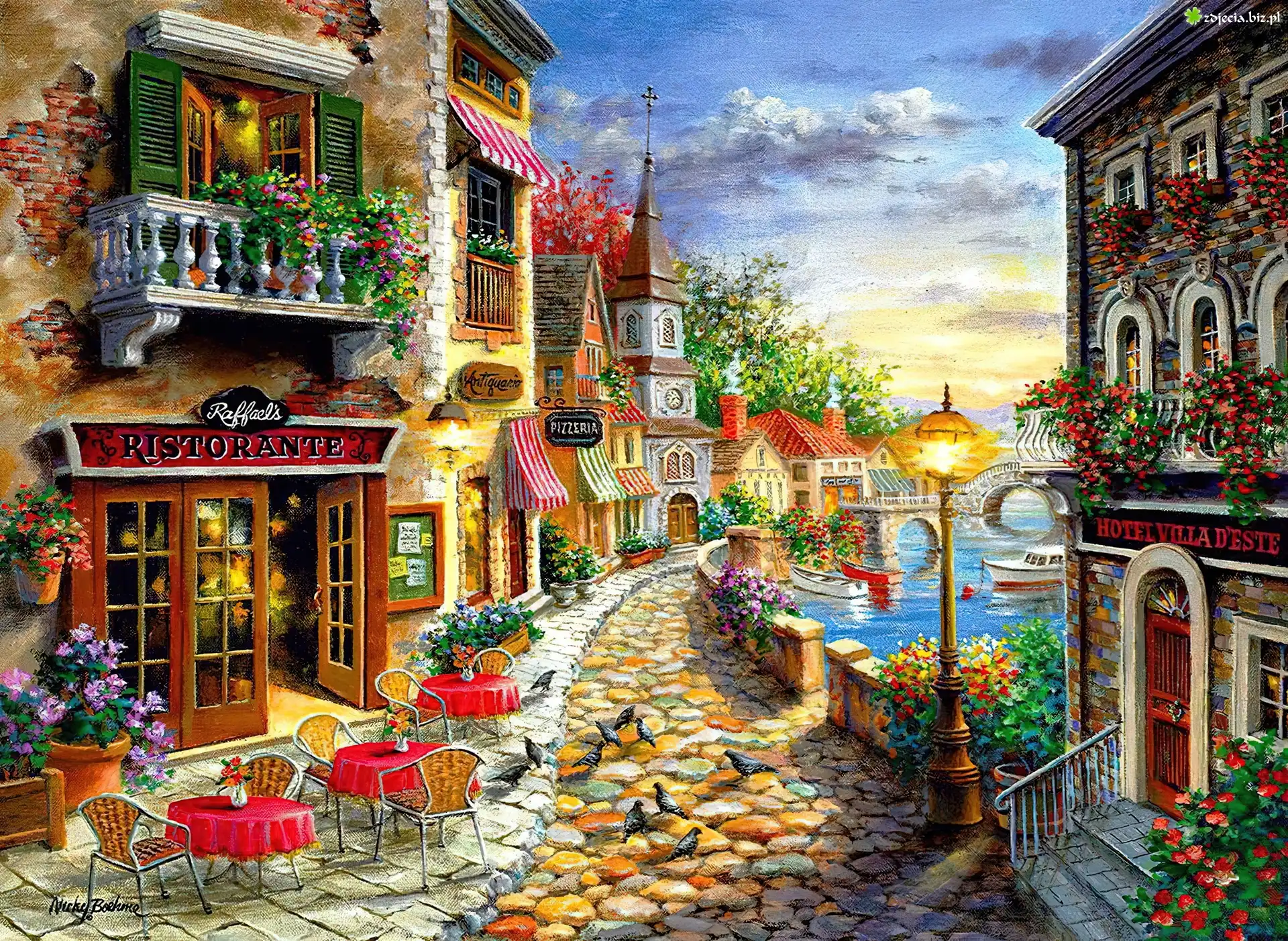 Zdjęcie Domy, Uliczka, Widoczek, Malarstwo