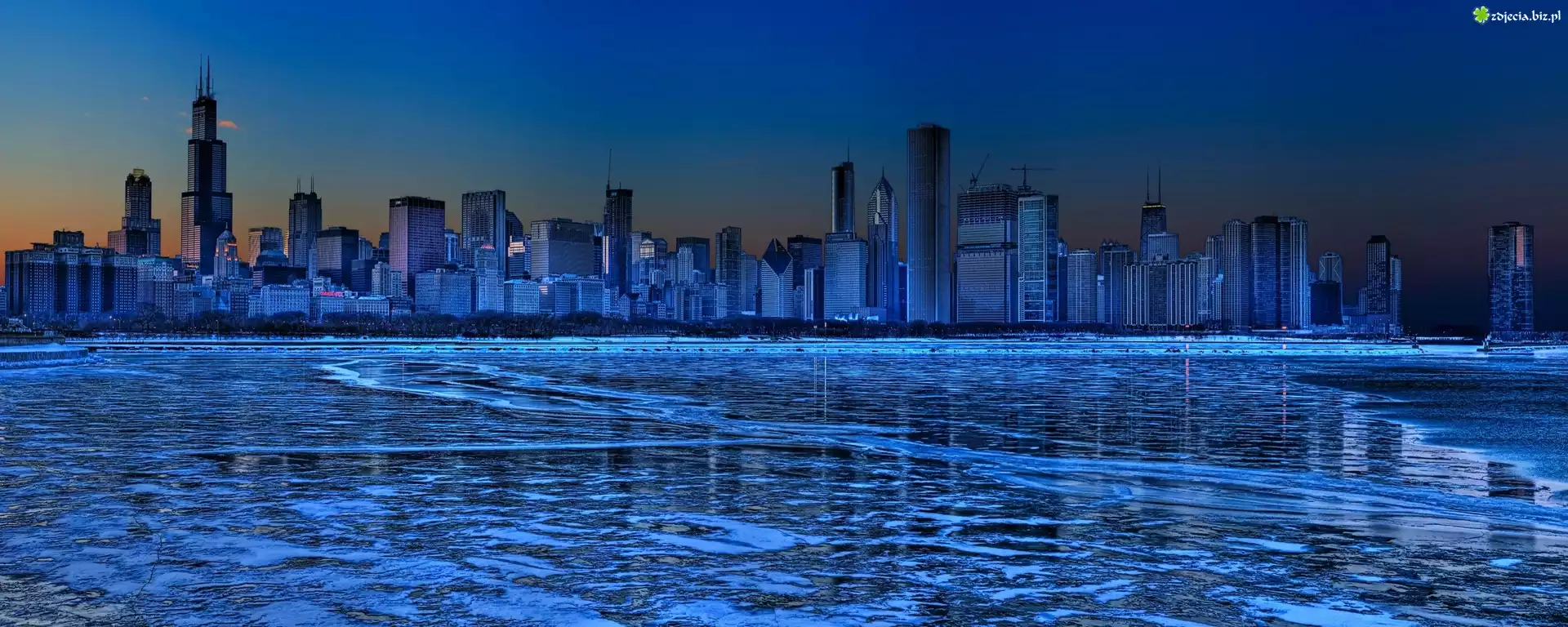 Zdjęcie Drapacze, Chmur, Woda, Miasto, Nocą