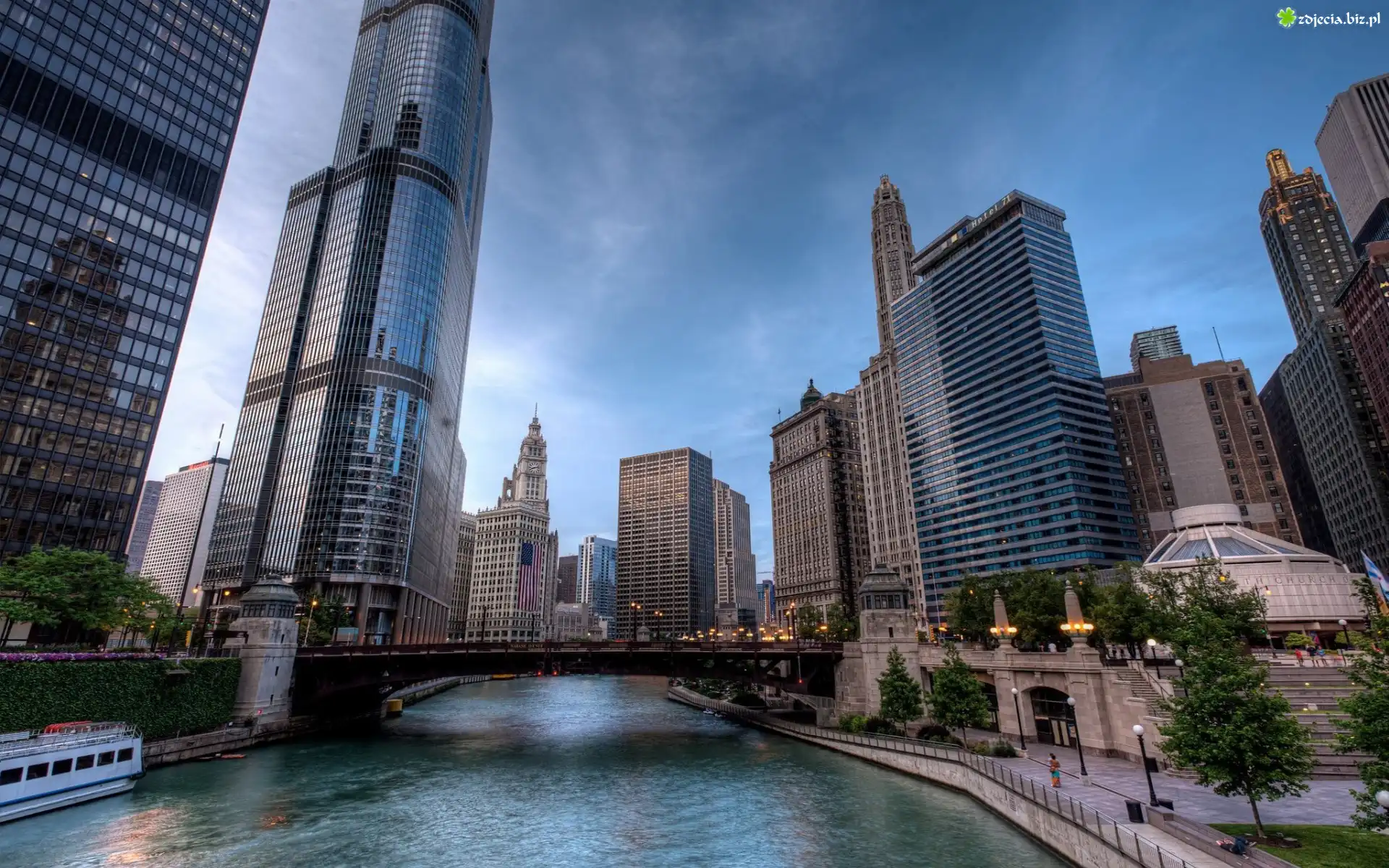 Zdjęcie Drapacze, Chmur, Rzeka, Most