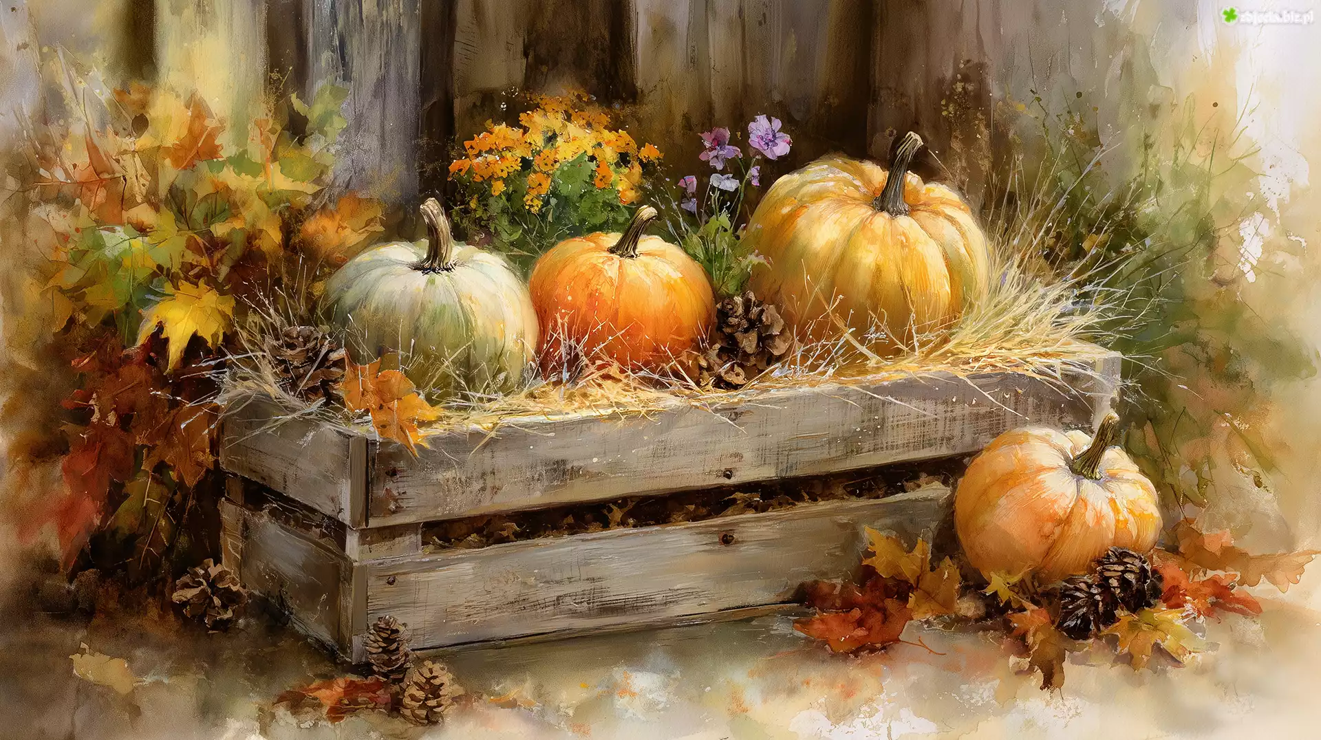 Zdjęcie Dynia, Drewniana, Skrzynia, Grafika AI