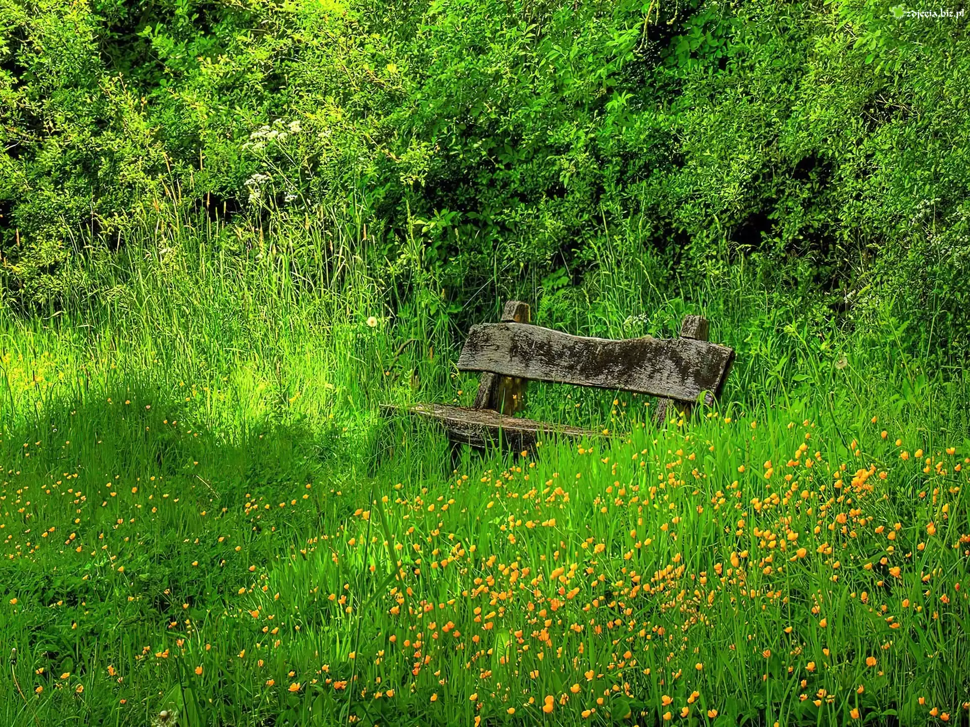 Zdjęcie Trawa, Drewniana, Ławka