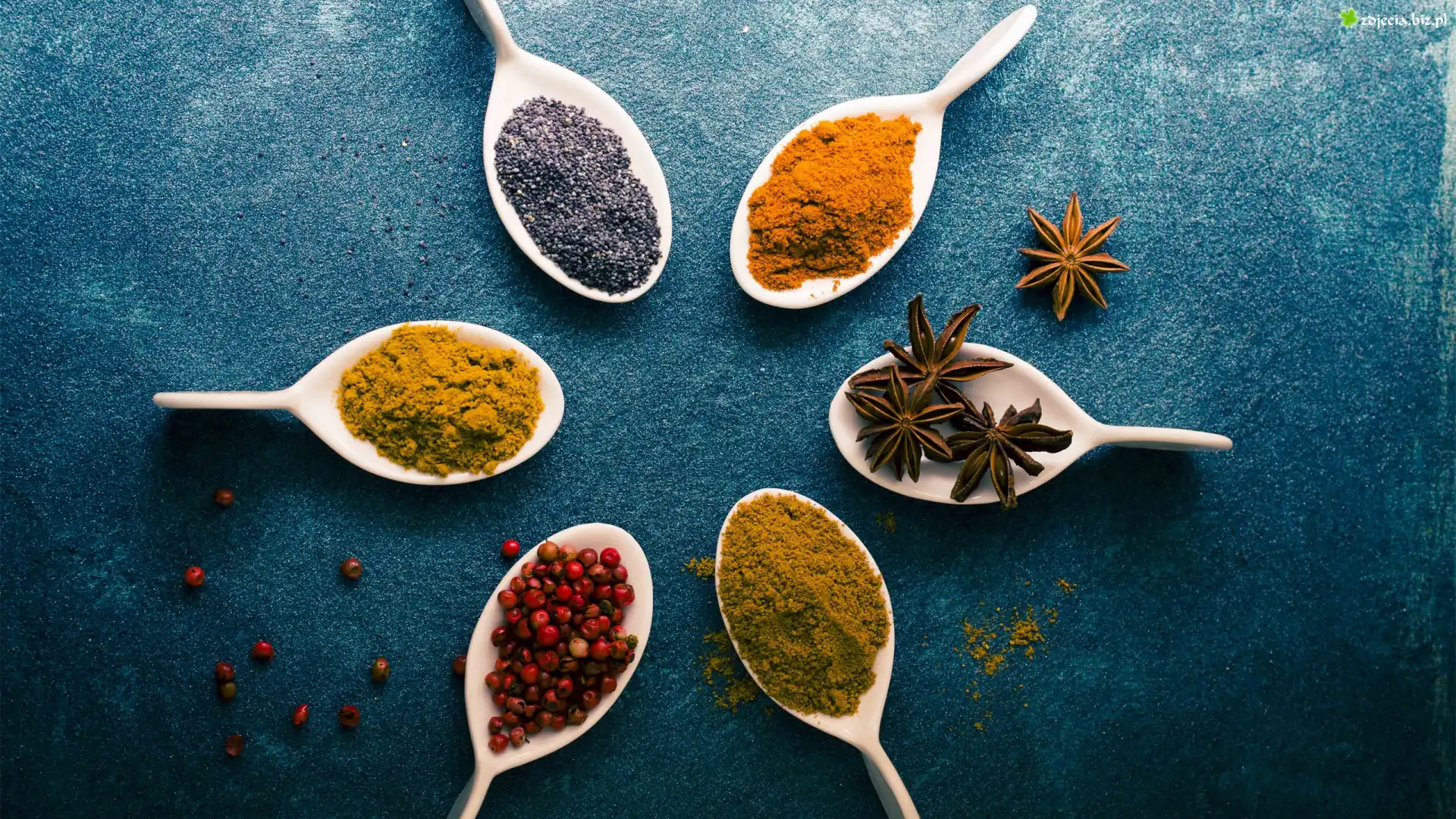 Zdjęcie, Drewniane, Łyżeczki, Przyprawy, Niebieskie, Tło