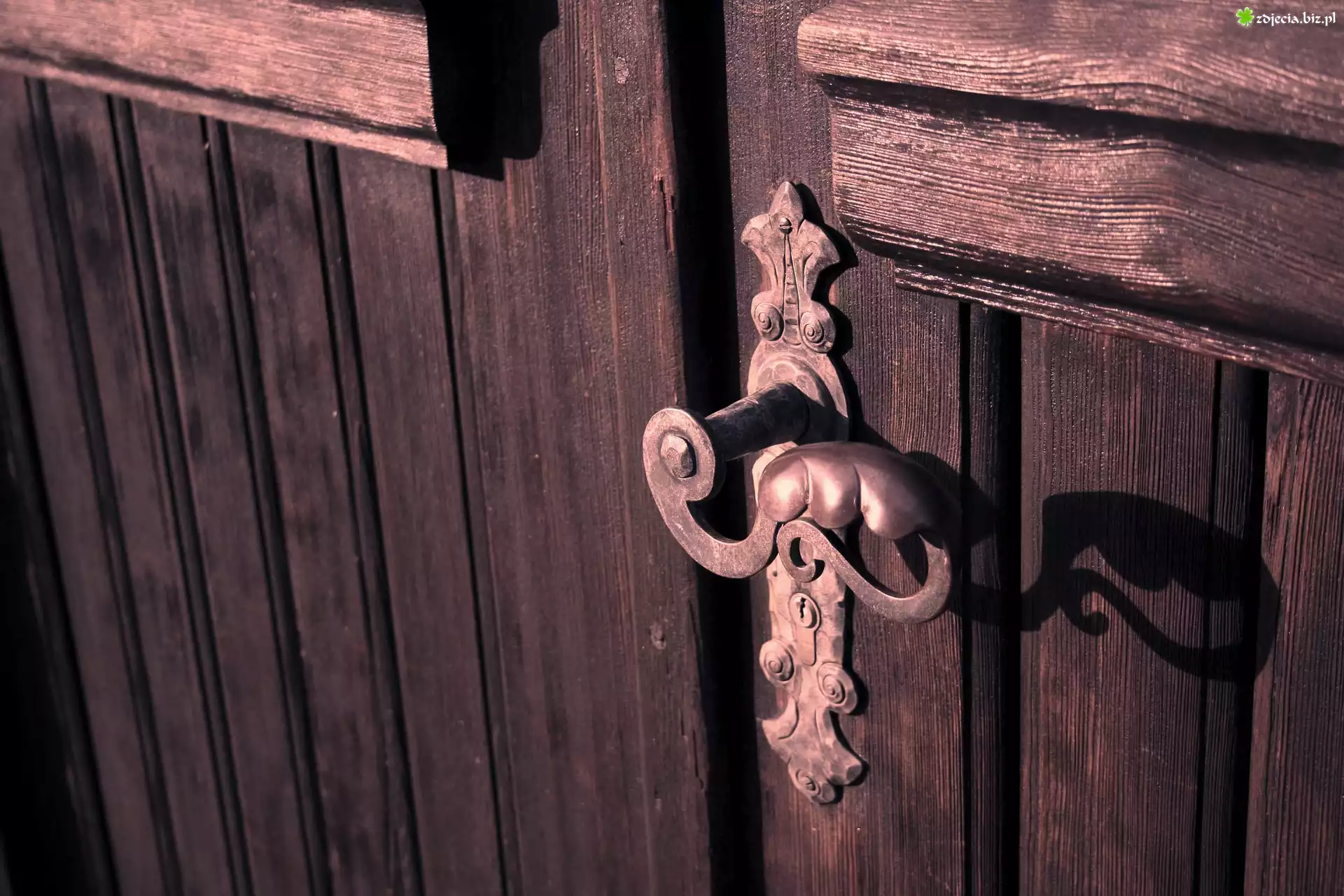 Zdjęcie Drewniane, Drzwi, Metalowe, Okucia, Klamka