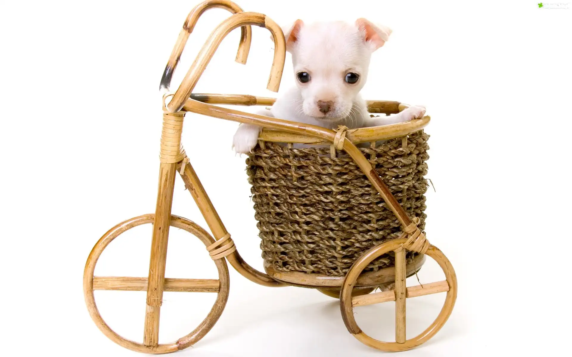 Zdjęcie, Drewniany, Rowerek, Biały, Szczeniak