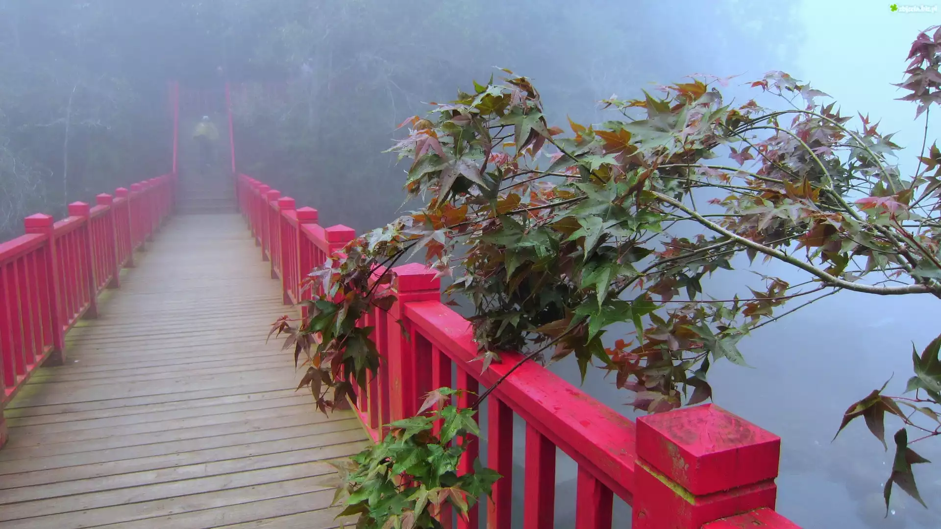 Zdjęcie Drewniany, Most, Mgła, Drzewa