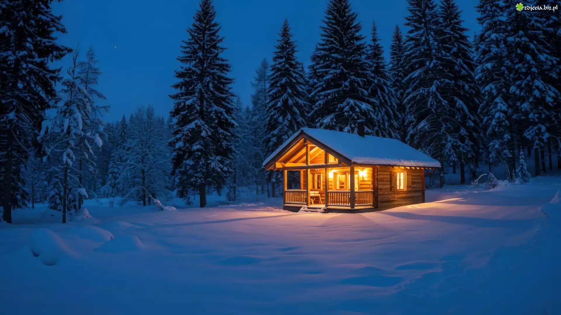 Zdjęcie Zima, Drewniany, Oświetlony, Dom, Drzewa