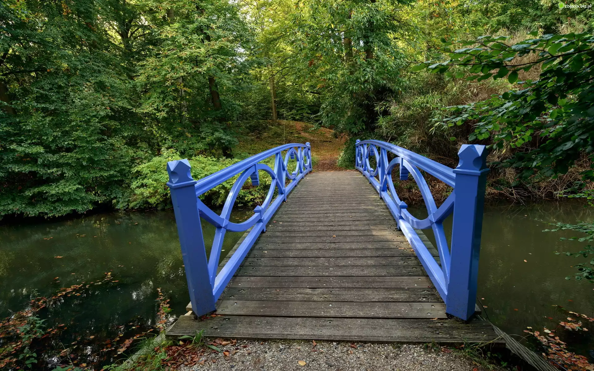 Zdjęcie Drewniany, Niebieski, Most, Rzeka, Park