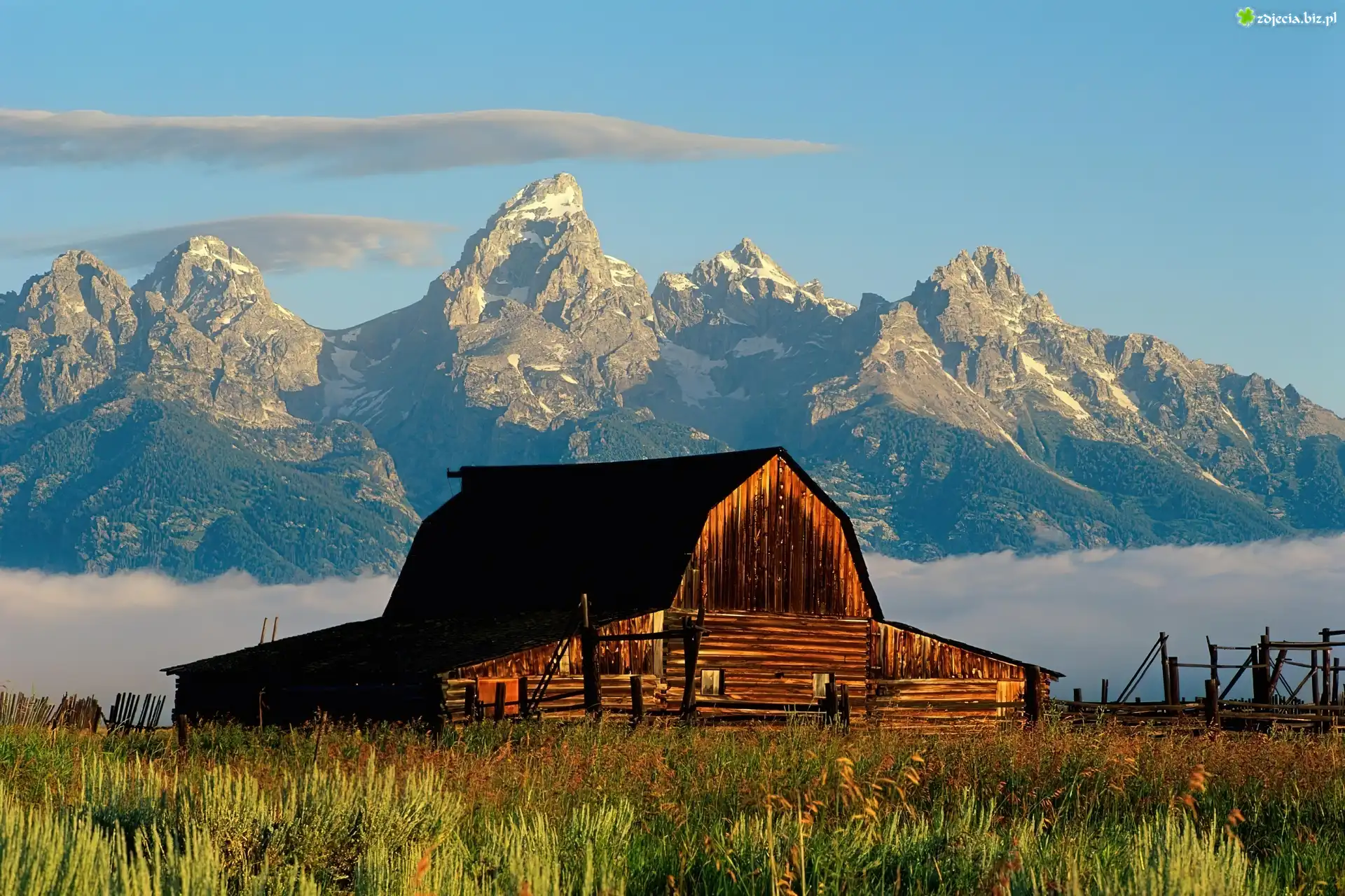 Zdjęcie Drewniany, Budynek, Trawa, Góry
