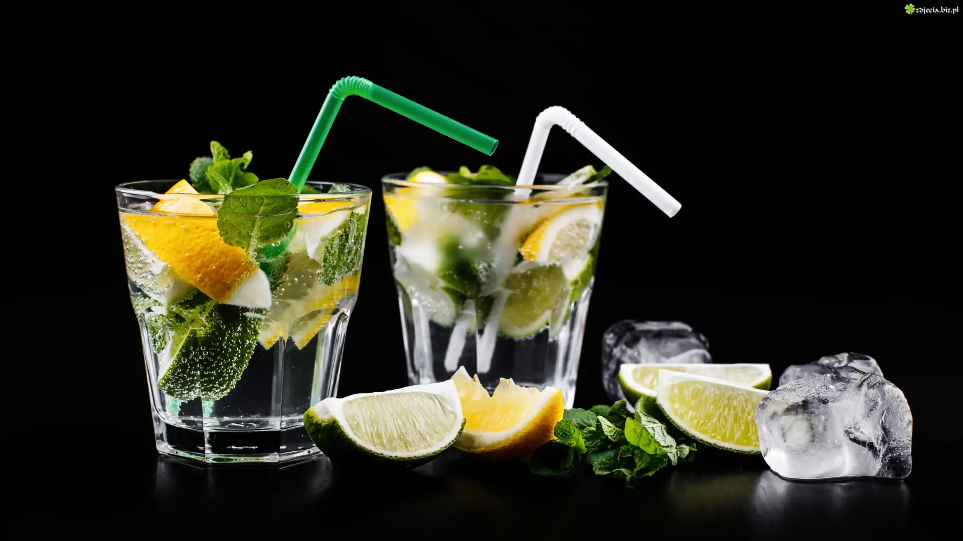 Zdjęcie Drinki, Słomki, Limonka, Lód