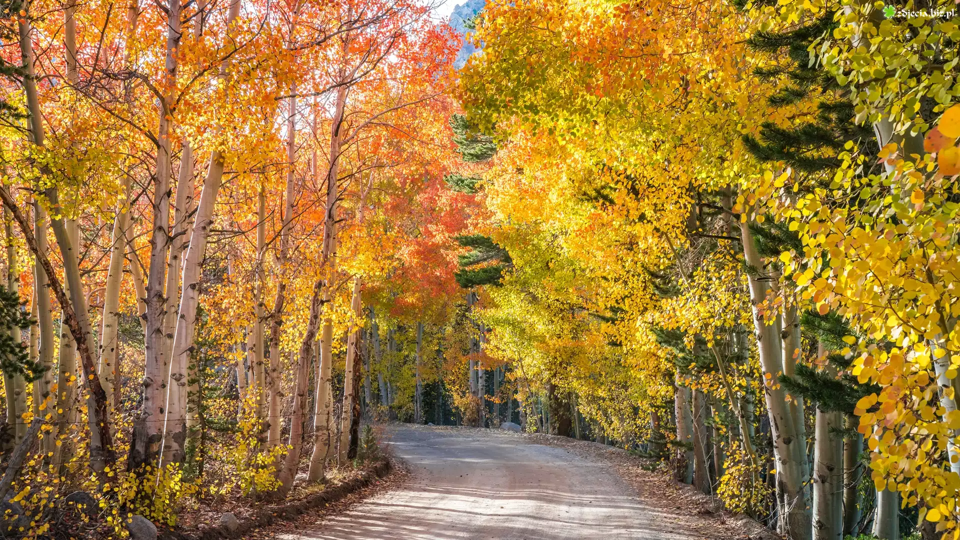 Zdjęcie Droga, Drzewa, Brzozy, Jesień
