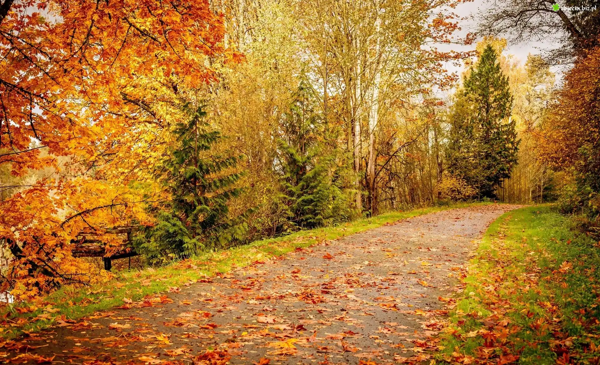 Zdjęcie Droga, Jesień, Las, Drzewa, Liście
