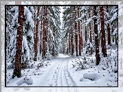 Zdjęcie Zima, Ośnieżone, Drzewa, Droga, Las, Grafika AI