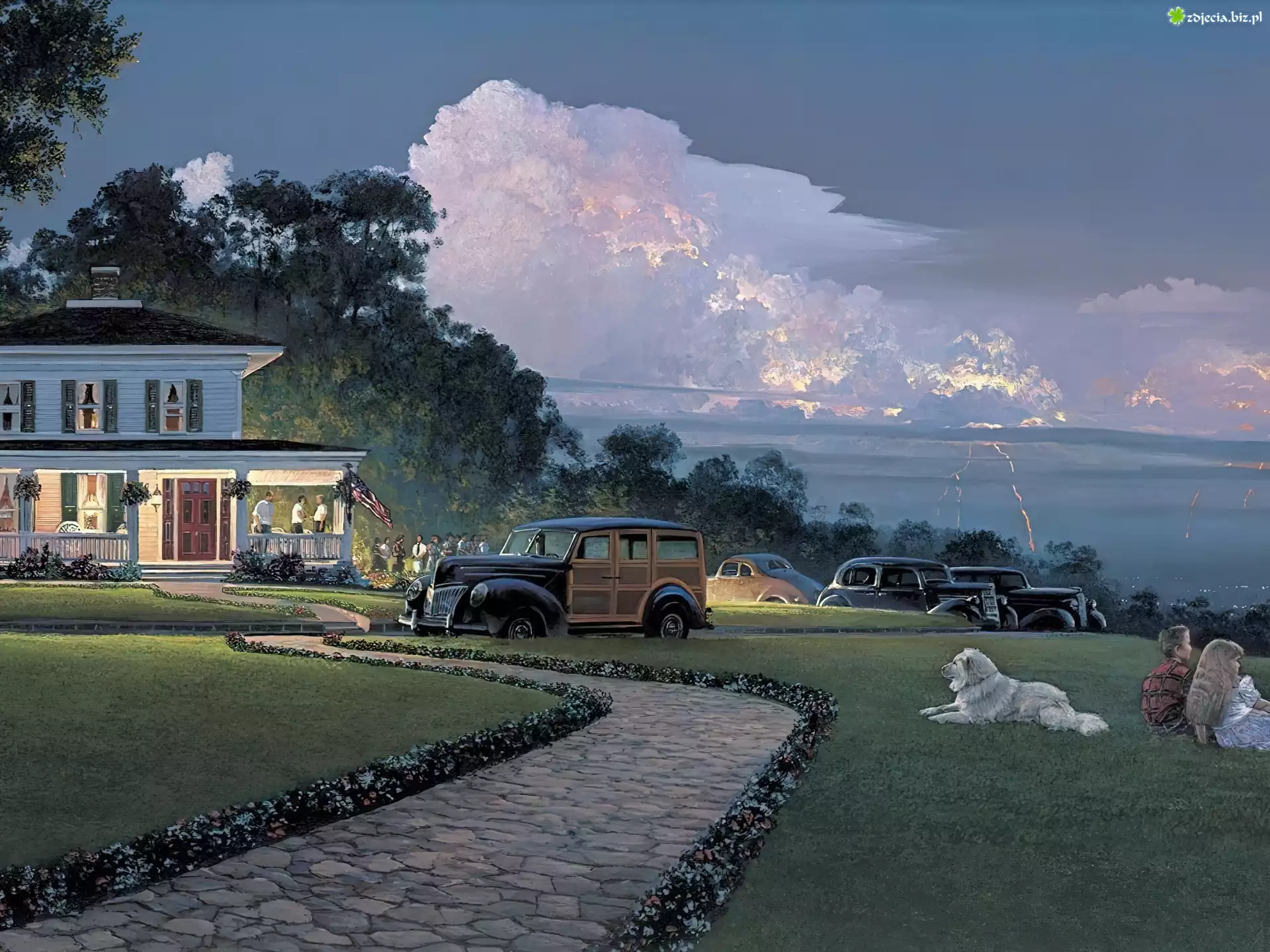 Zdjęcie Droga, Dom, Auta, Dzieci, Pies