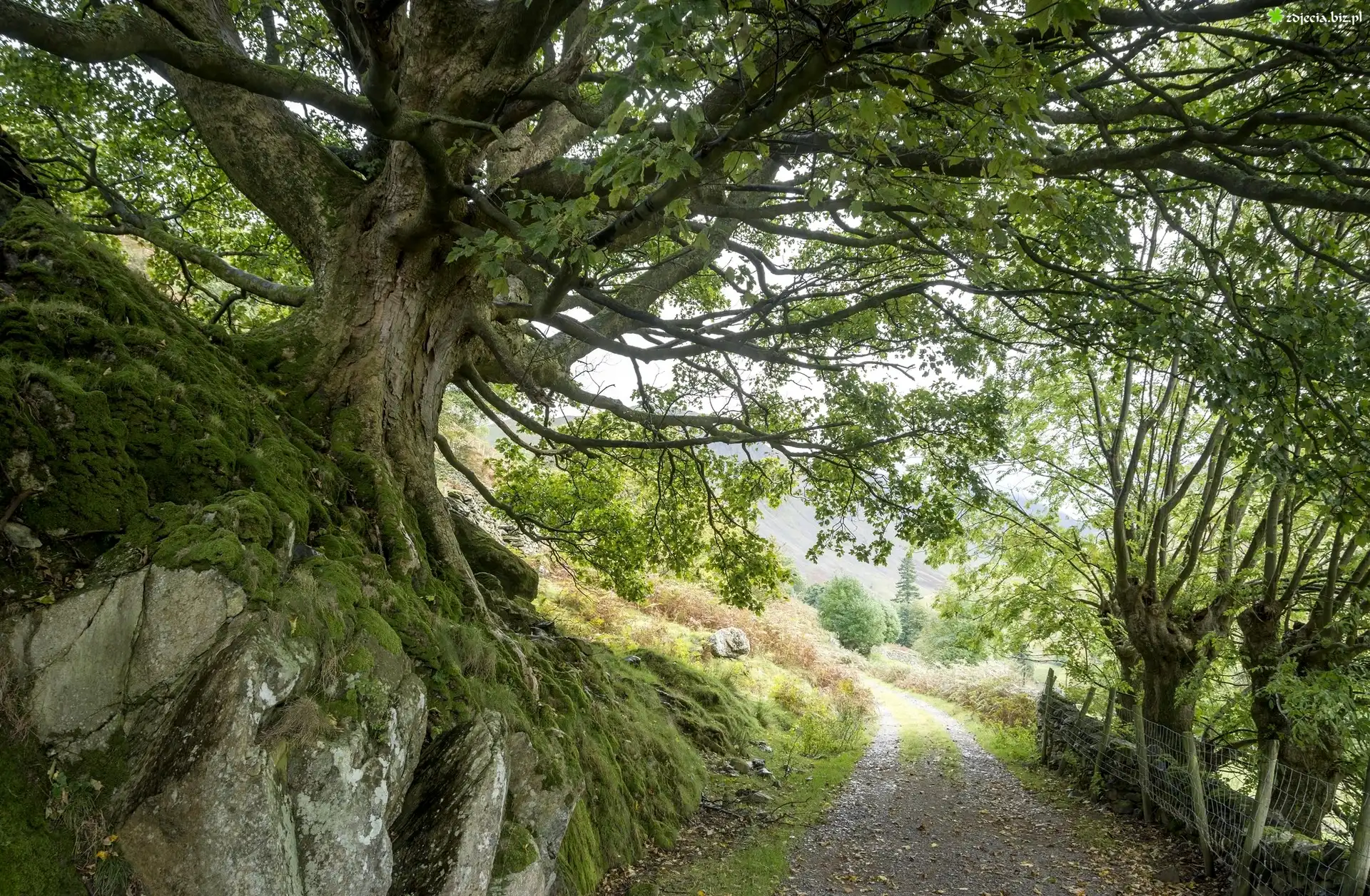 Zdjęcie Droga, Drzewo, Omszałe, Kamienie