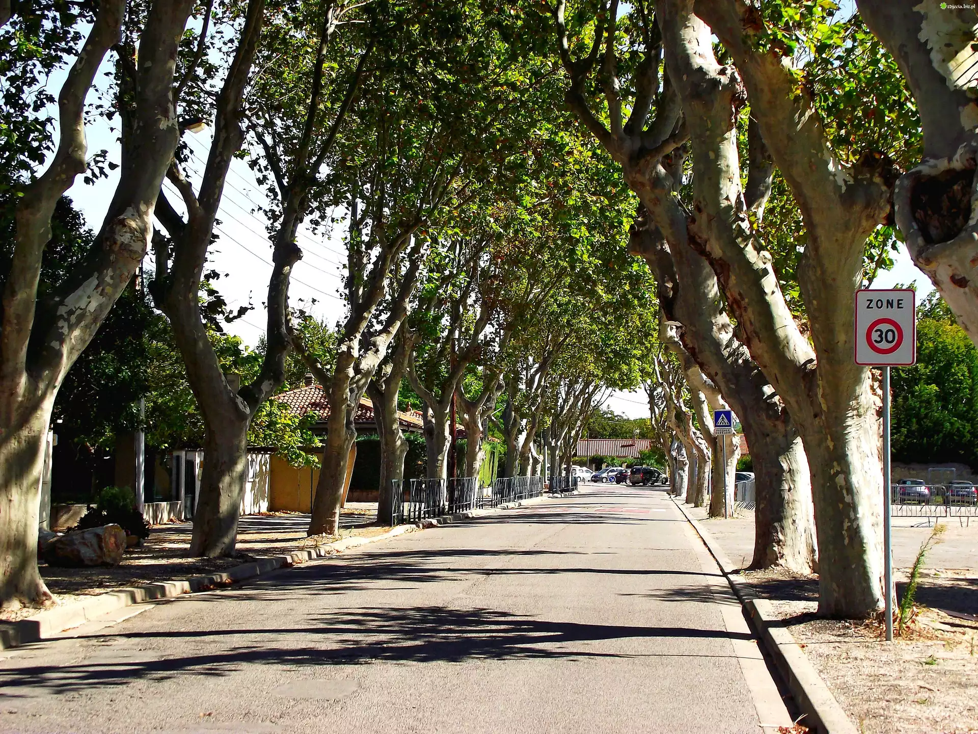 Zdjęcie Droga, Drzewa, Platany, Francja