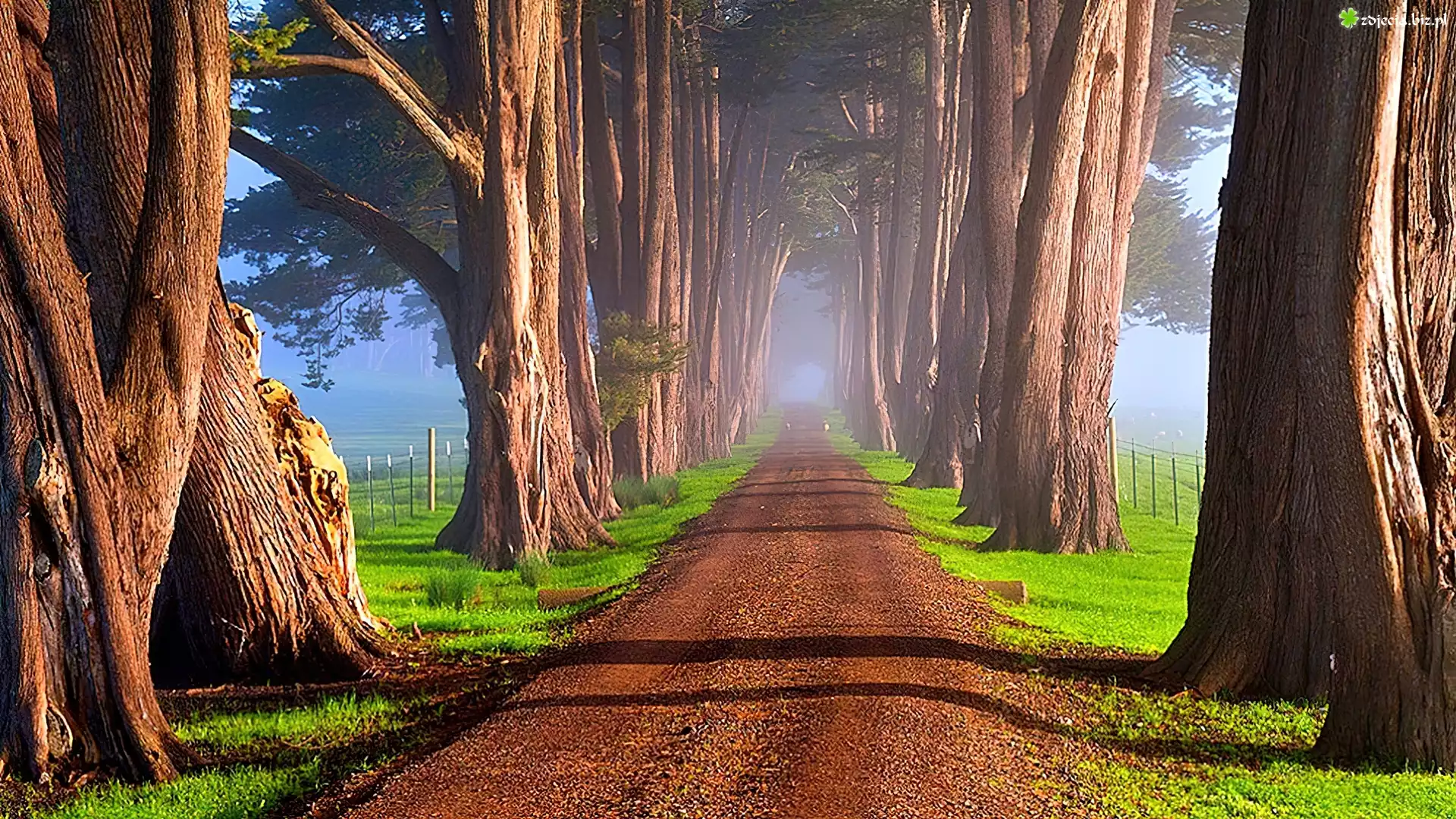 Zdjęcie Droga, Szpaler, Drzew, Poranek, Mgła