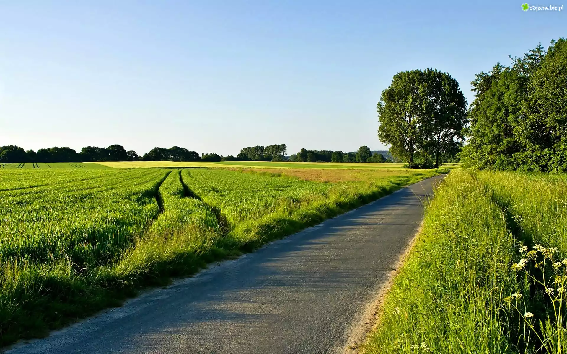 Zdjęcie Droga, Pole, Drzewa, Przebijające, Światło