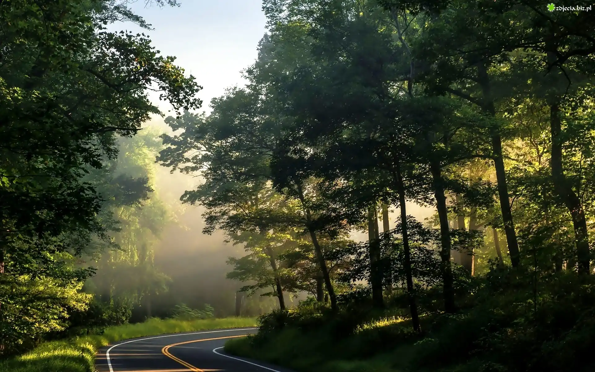 Zdjęcie Droga, Las, Mgła, Przebijające, Światło