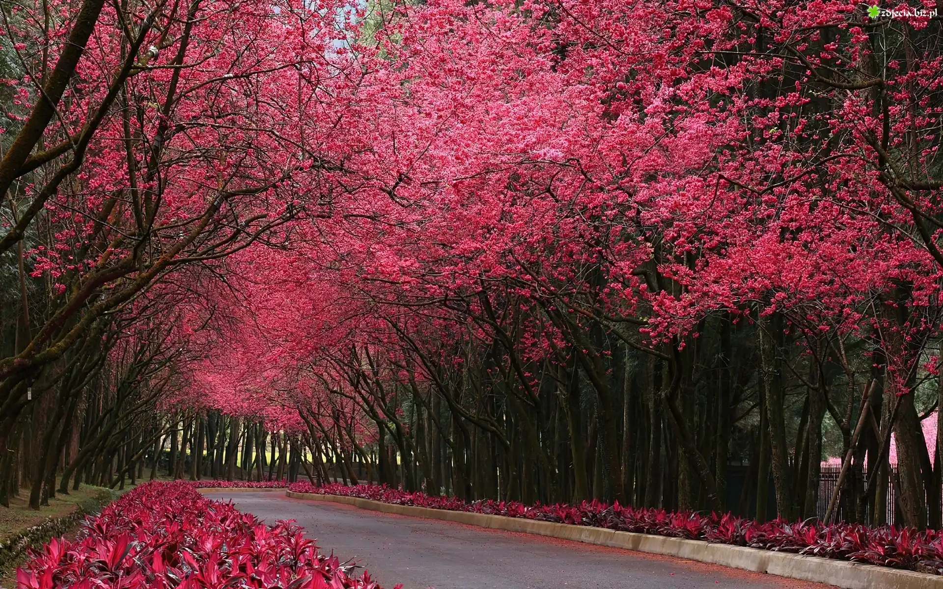 Zdjęcie Droga, Kwitnące, Różowe, Drzewa