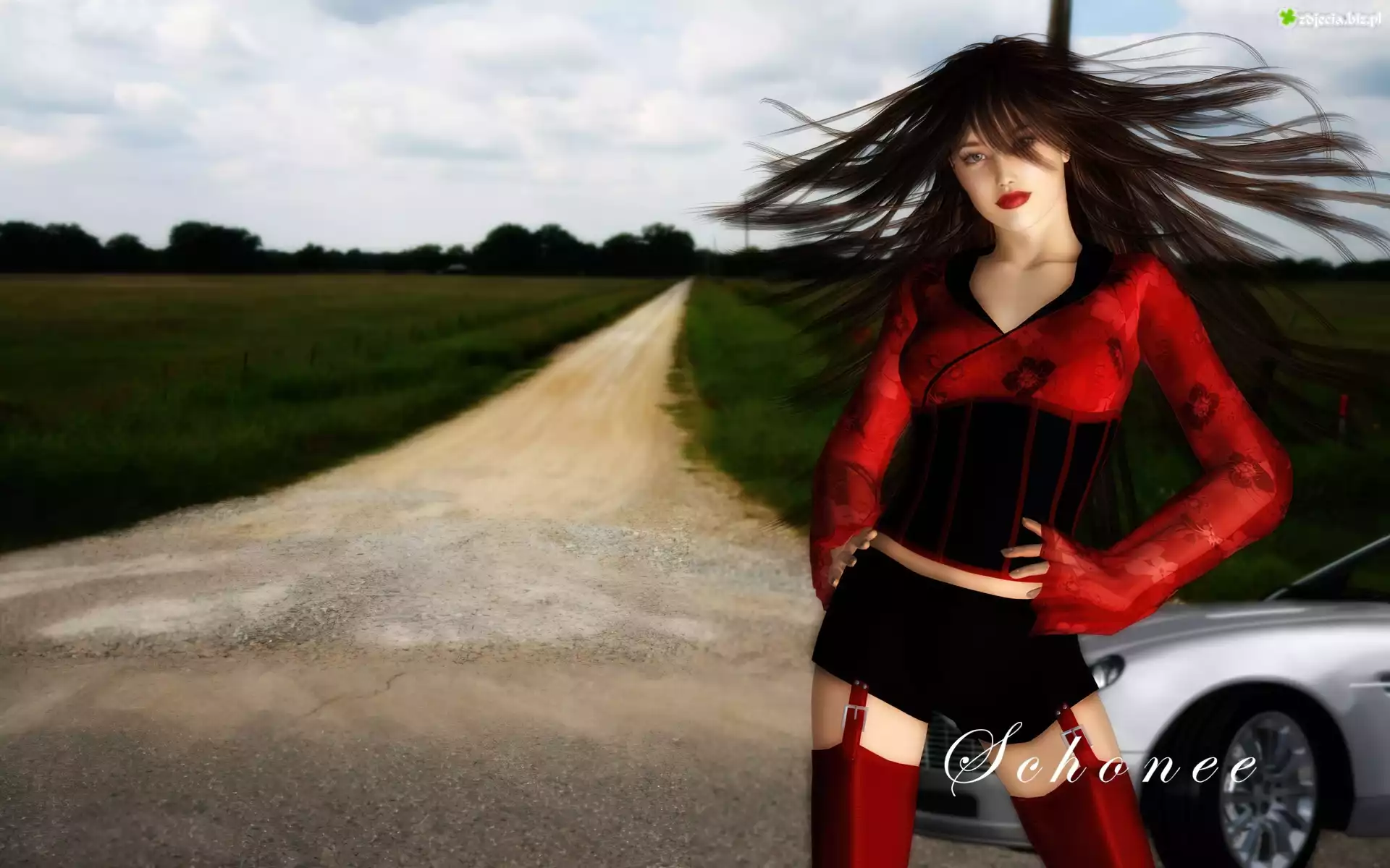 Zdjęcie Droga, Samochód, Dziewczyna, Rozwiane, Włosy