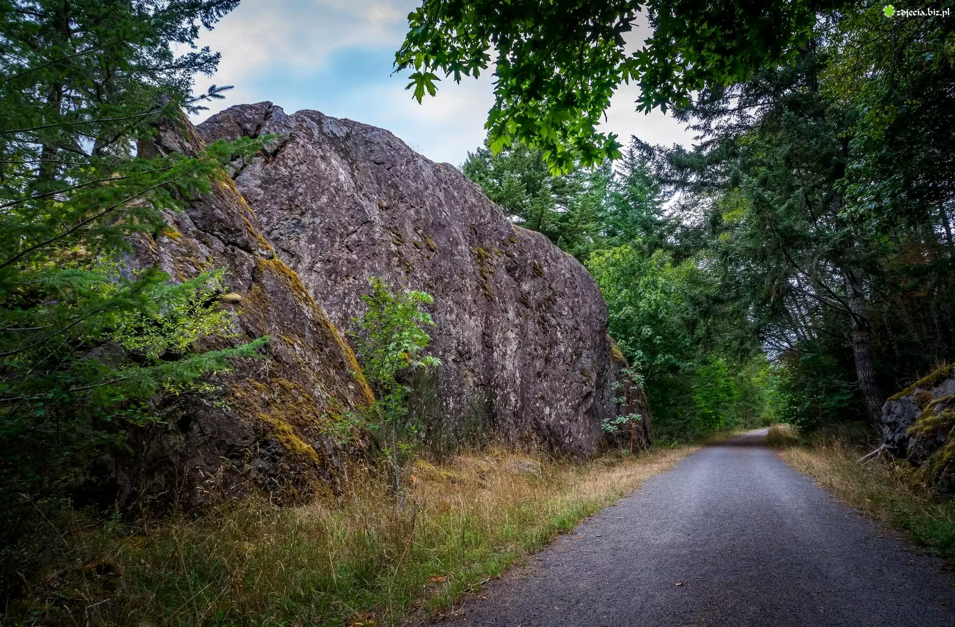 Zdjęcie Droga, Głazy, Skały, Drzewa
