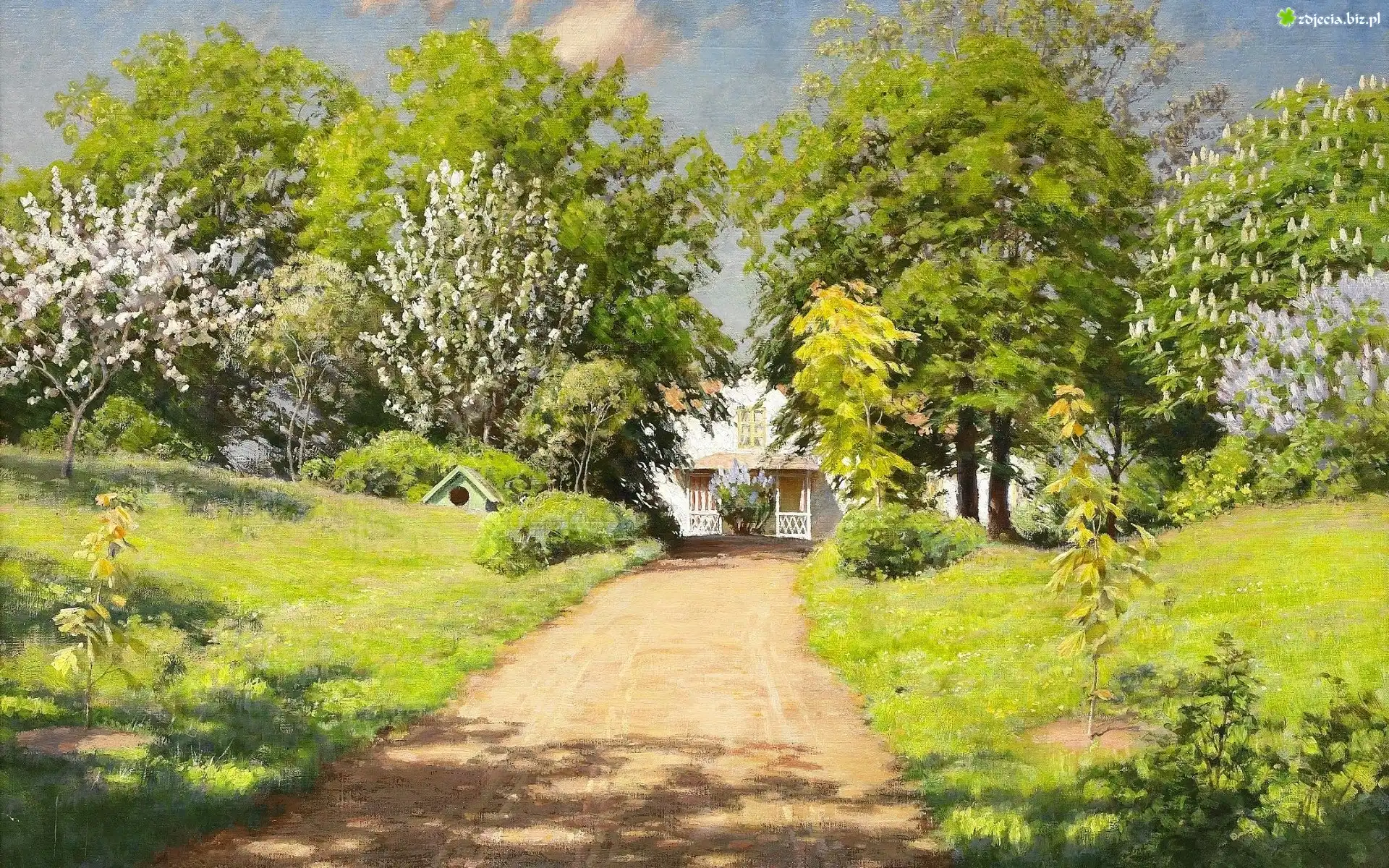 Zdjęcie Wiosna, Droga, Dom, Johan Krouthen, Obraz, Olej