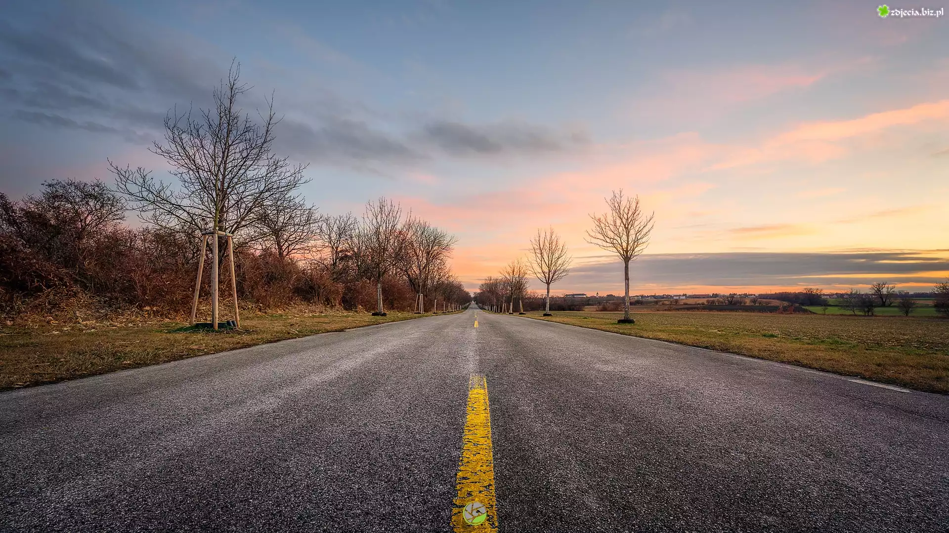 Zdjęcie, Zachód słońca, Drzewa, Droga