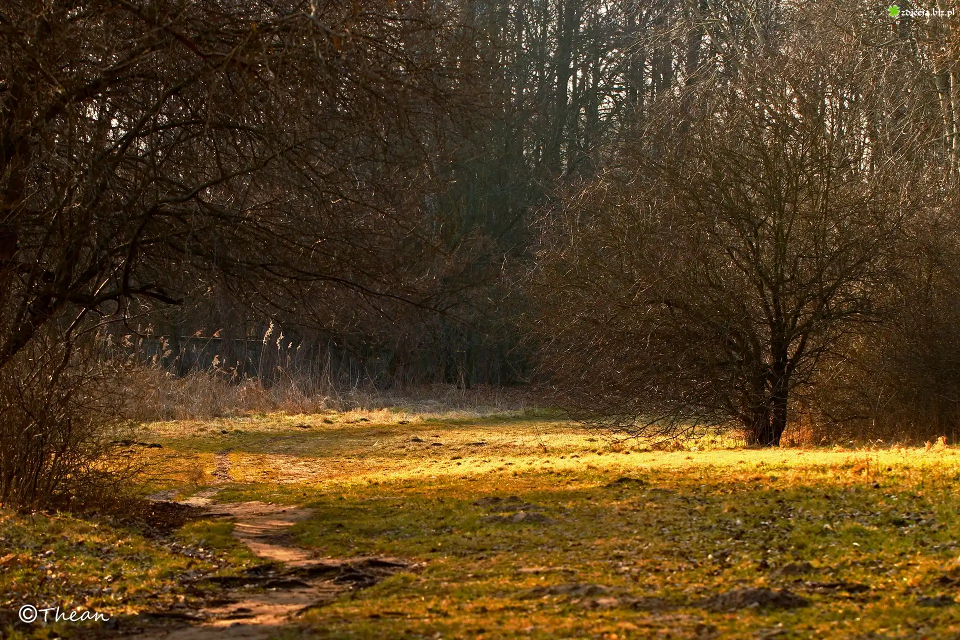 Zdjęcie Dróżka, Ścieżka, Drzewa, Trawa, Przedwiośnie