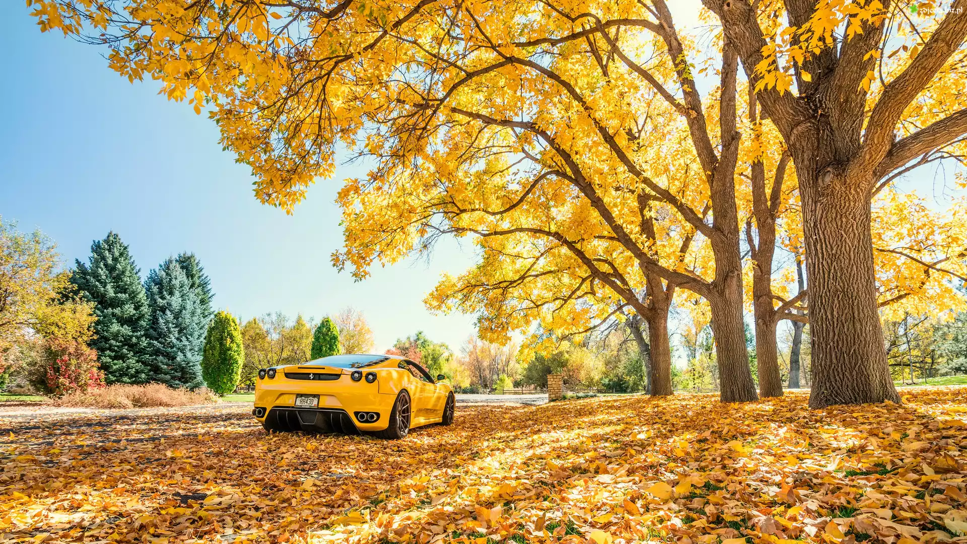 Zdjęcie, Jesień, Drzewa, Liście, Żółty, Samochód, Ferrari F 430
