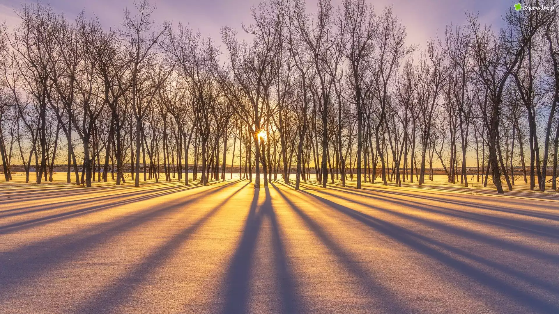 Zdjęcie Zima, Drzewa, Cień, Wschód słońca