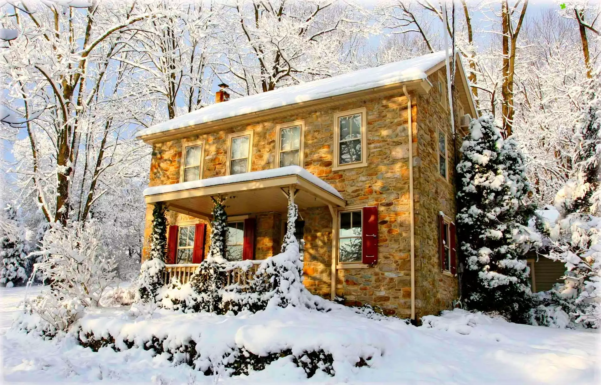 Zdjęcie Dom, Drzewa, Zima