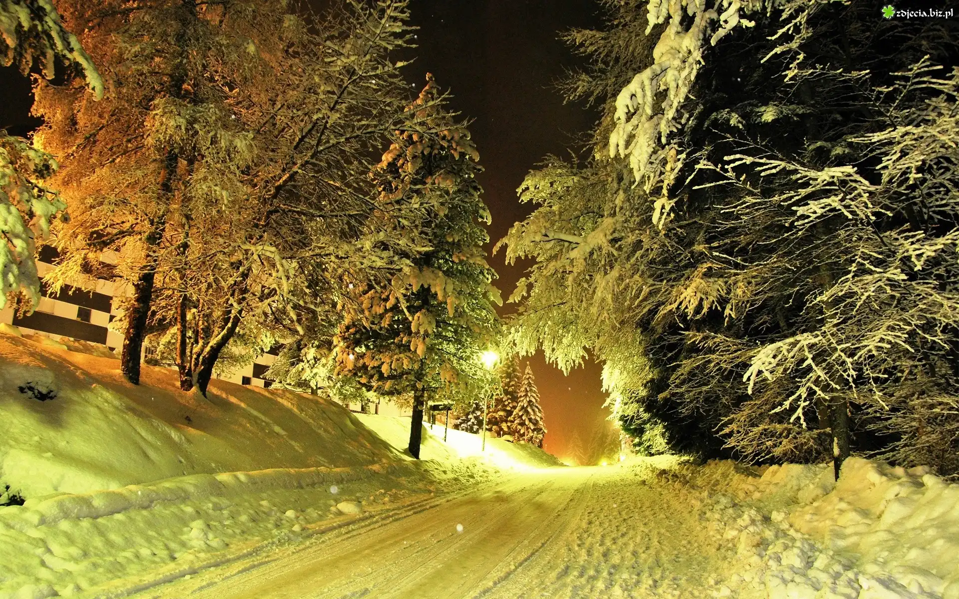 Zdjęcie Droga, Drzewa, Śnieg