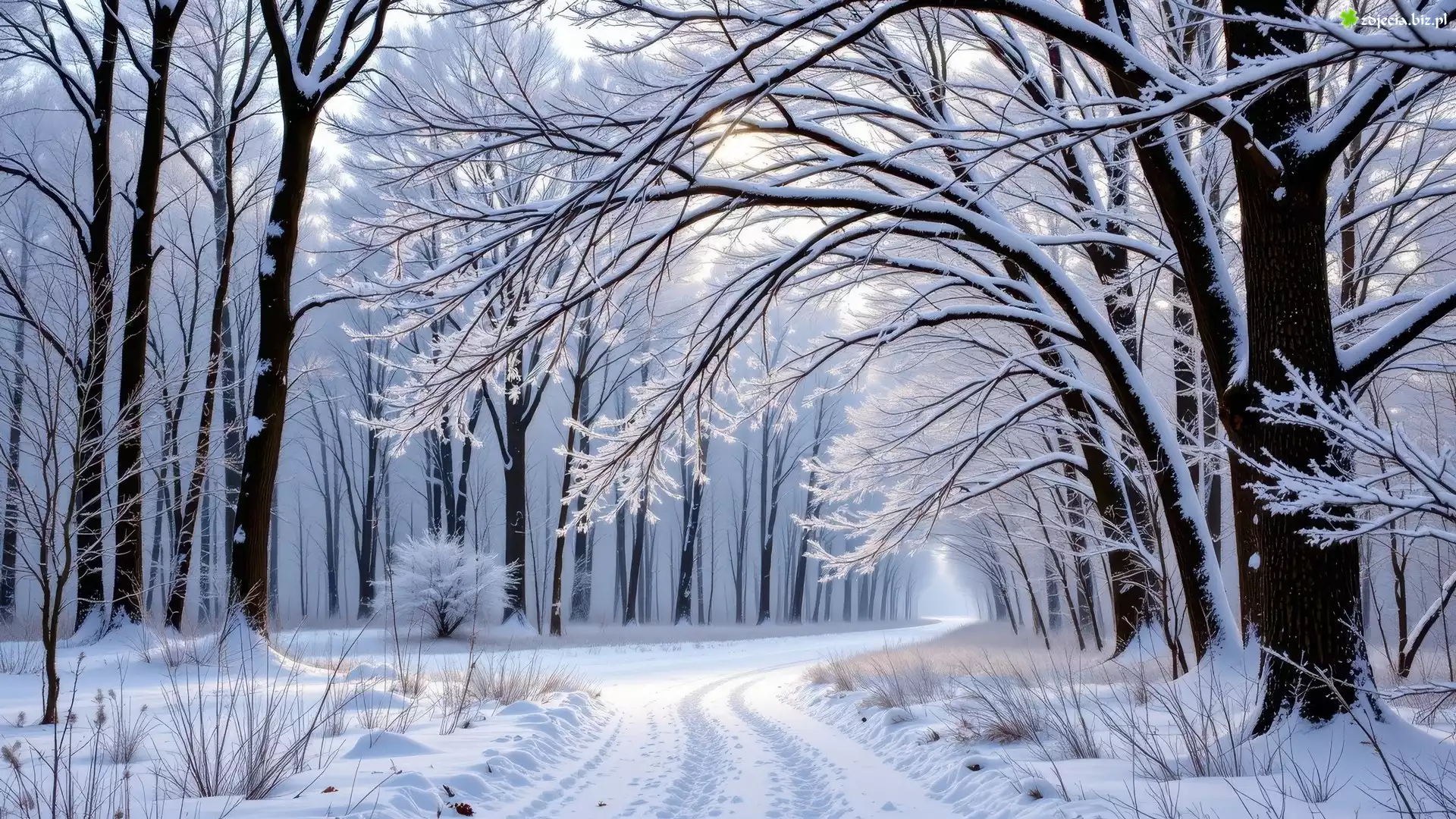 Zdjęcie Zima, Las, Ośnieżone, Drzewa, Rośliny, Droga