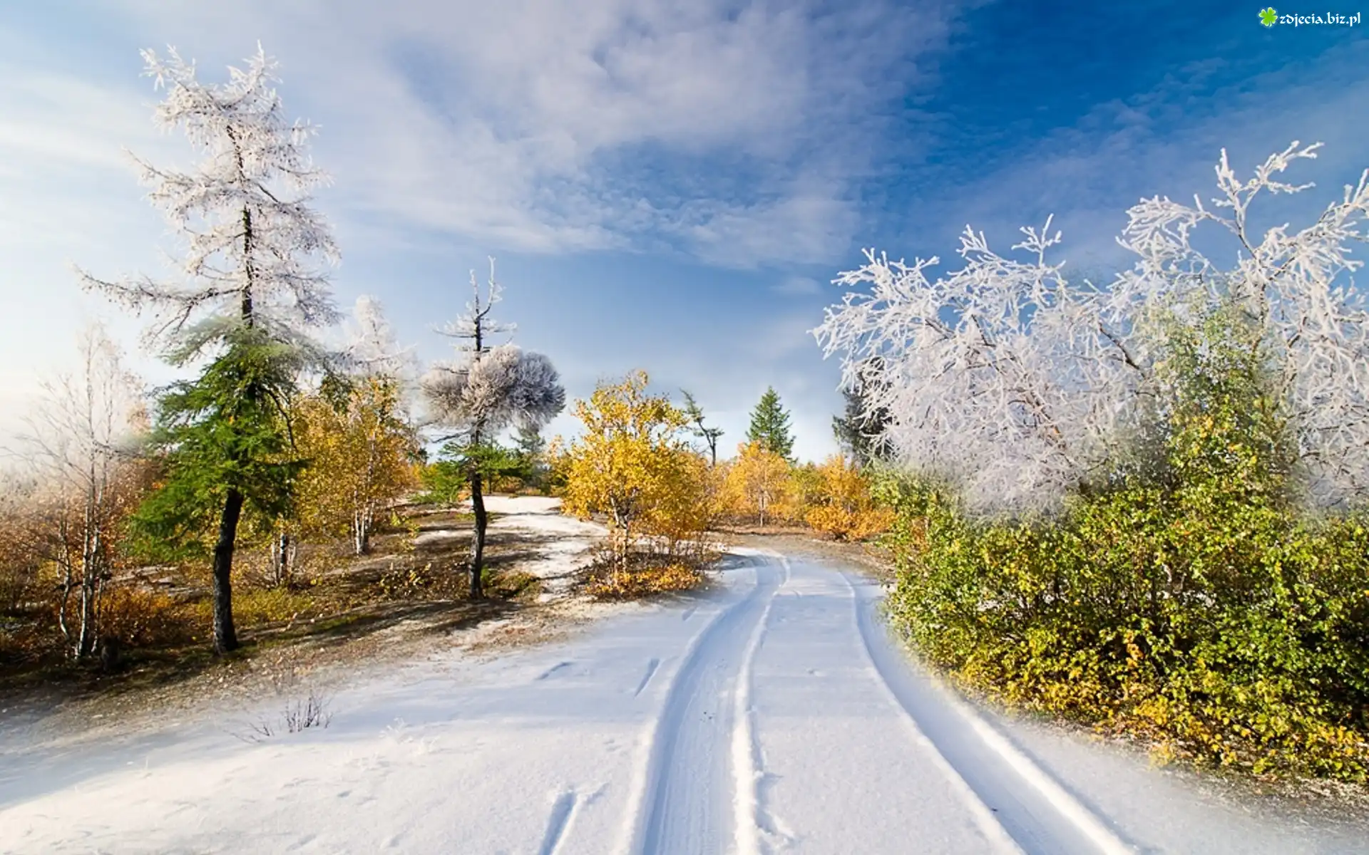 Zdjęcie Droga, Drzewa, Zima