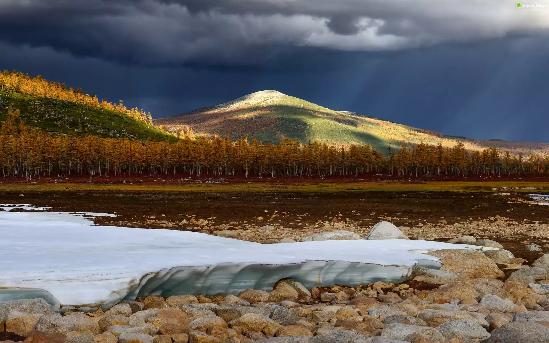 Zdjęcie, Śnieg, Góra, Drzewa, Kamienie