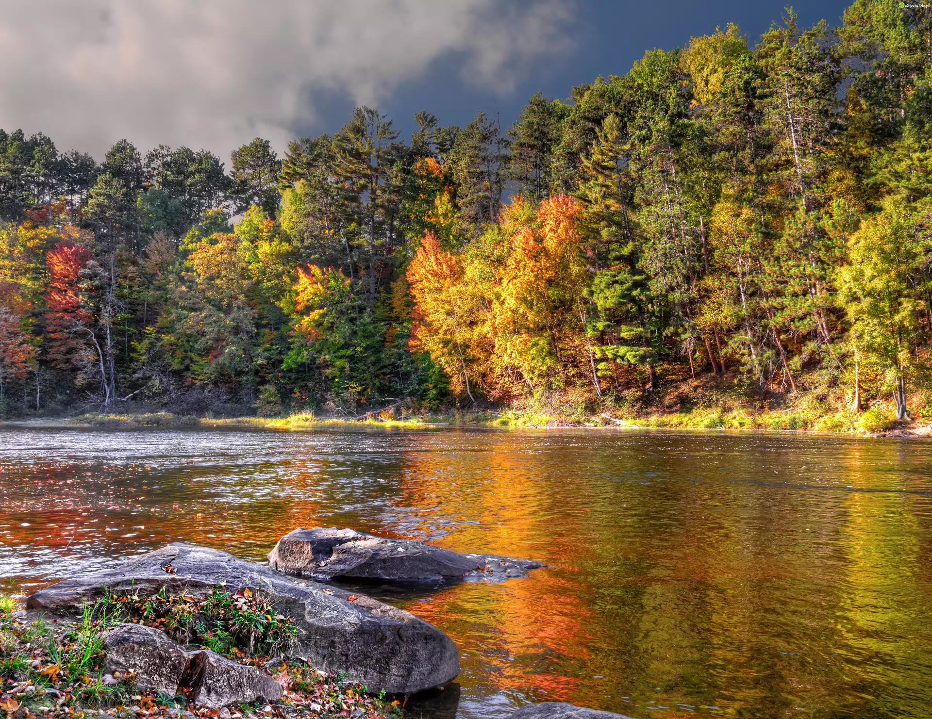 Zdjęcie, Jesień, Drzewa, Rzeka