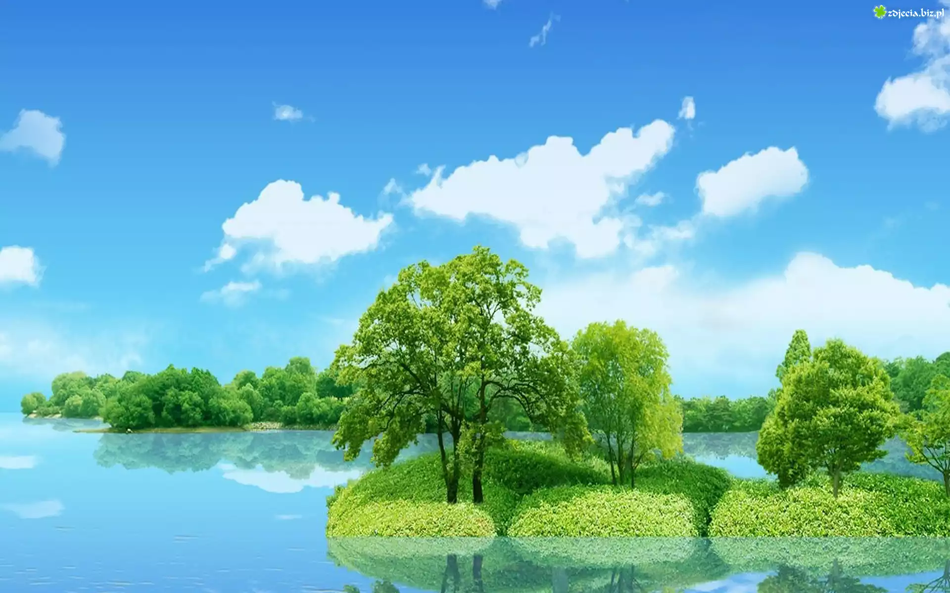 Zdjęcie Jezioro, Drzewa, Chmurki