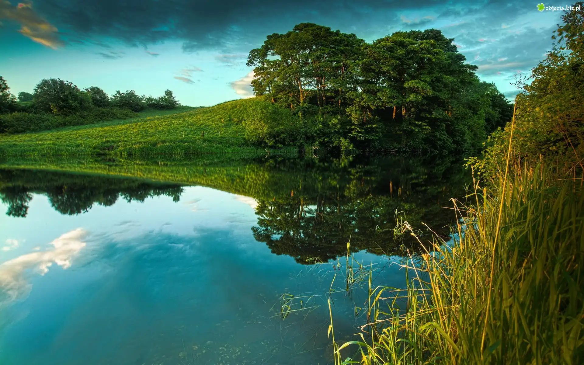 Zdjęcie, Jezioro, Drzewa, Chmury