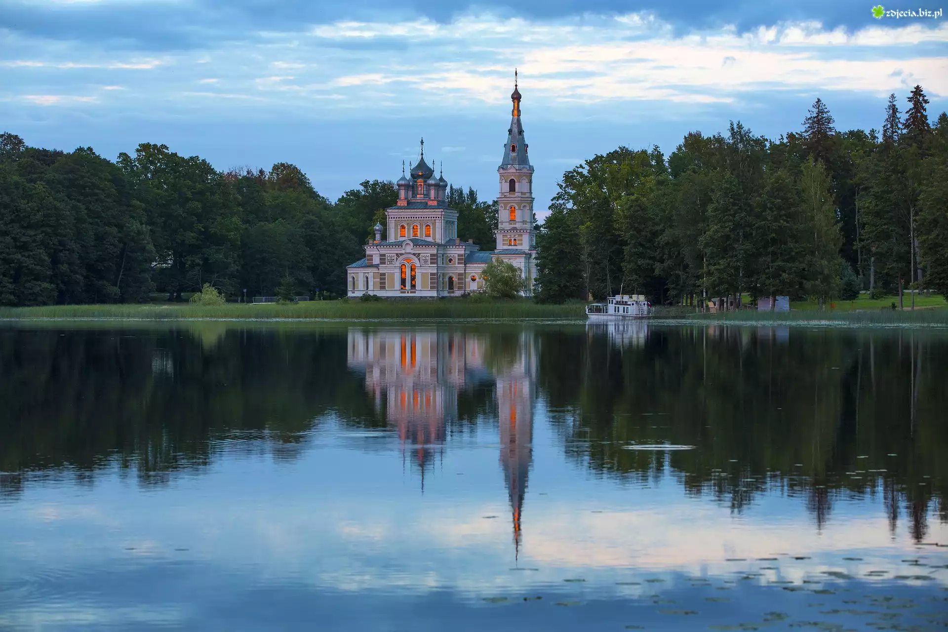 Zdjęcie Cerkiew, Drzewa, Jezioro, Stameriena, Łotwa