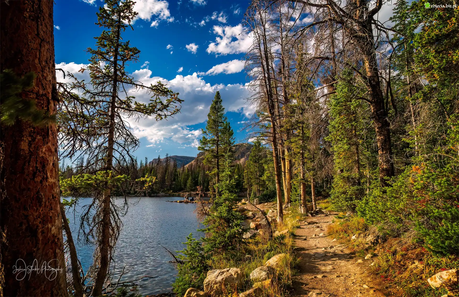 Zdjęcie Jezioro, Góry, Las, Drzewa, Ścieżka, Kamienie