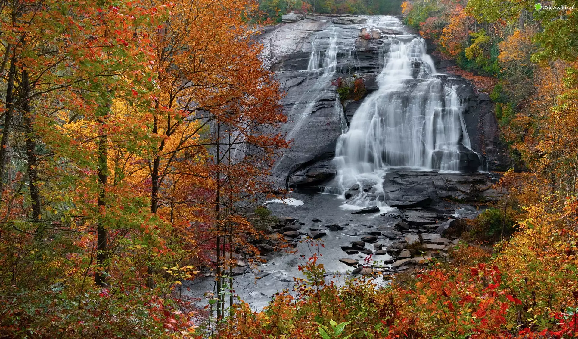 Zdjęcie Jesień, Skały, Wodospad, High Falls, Kolorowe, Drzewa, Karolina Północna, Stany Zjednoczone |