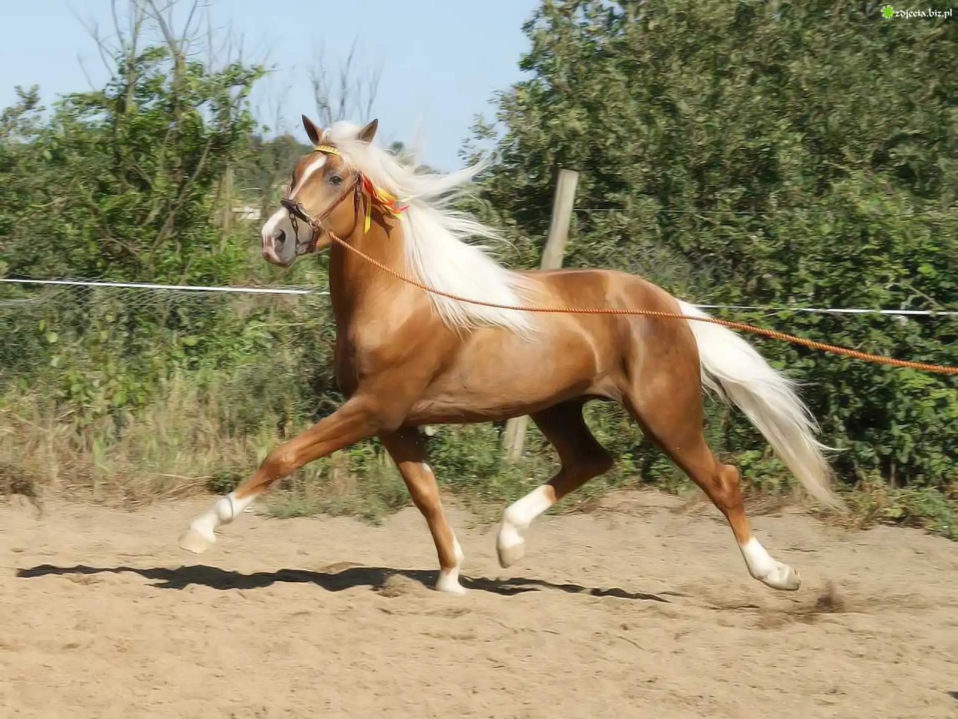 Zdjęcie Koń, Drzewa, Uprząż